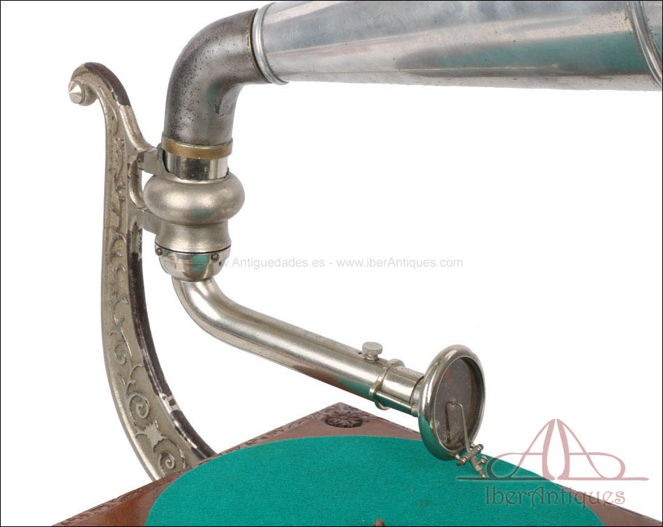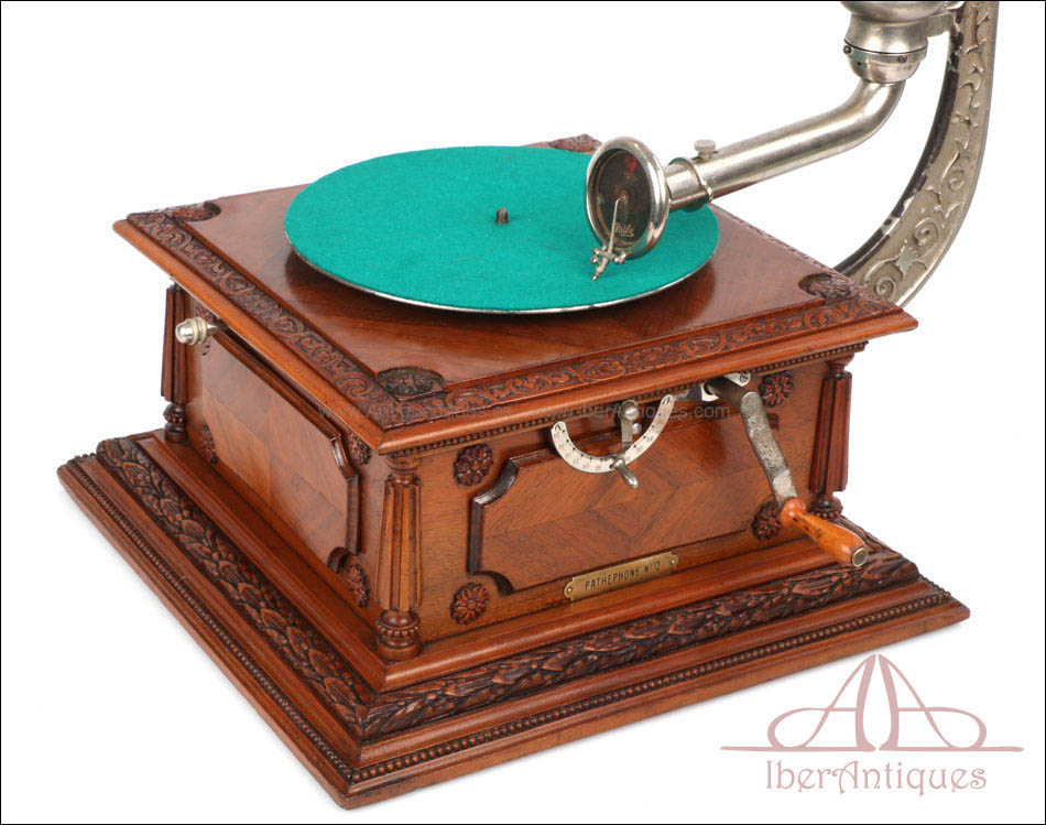 Antiguo Gramófono Pathé Pathéphone Nº12 con Trompa de Aluminio. Francia circa 1915 |