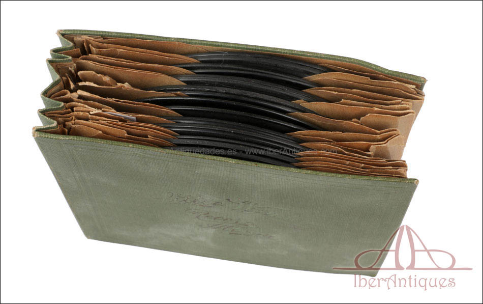 Esta es una rarísima máquina europea es un pequeño misterio, y es posiblemente de origen suizo o alemán, aunque no se puede descartar su origen español. Fue fabricada hacia 1915 y concebida para reproducir discos de pequeño formato tipo Little Wonder. Se acompaña de un álbum con 17 discos Little Wonder producidos en EE. UU., un conjunto excepcional que refuerza su interés histórico y coleccionista. Aunque los discos Little Wonder originales eran estadounidenses, esta máquina lleva el reproductor con la marca “Gramolina”, lo que apunta a una producción europea, quizás española, pero inspirada claramente en aquel exitoso modelo americano de discos económicos.