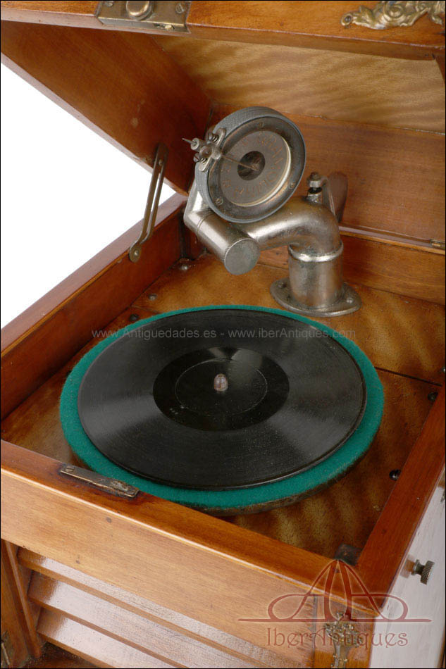 Este gramófono no es solo un aparato de colección único, es una joya de transición, una muestra tangible de cómo la fonografía supo abrirse paso entre todas las clases sociales de la época. Una pieza con alma, con historia y con una presencia que no pasa desapercibida. Si buscas una máquina diferente, rara, con autenticidad y un innegable valor histórico, esta es una oportunidad irrepetible.