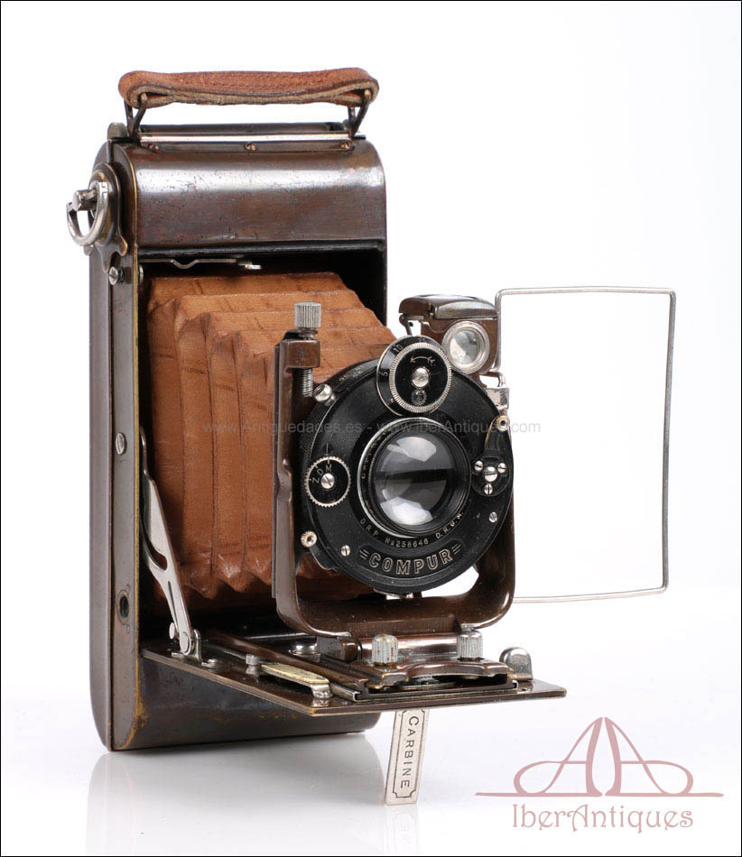 Cámara de fuelle plegable Ensign Carbine Nº6 “Tropen” (Tropical), fabricada en Inglaterra por The Houghton-Butcher Mfg. Co. Ltd., London, entre 1926 y 1931. Pertenece a la serie de cámaras tropicales destinadas a climas cálidos y húmedos, que comprendía los modelos Nº4, Nº6, Nº7 y Nº12. Este ejemplar corresponde al formato 2¼×3¼ pulgadas (rollo tipo 120), muy apreciado por su tamaño compacto y su capacidad para producir negativos de calidad profesional.
