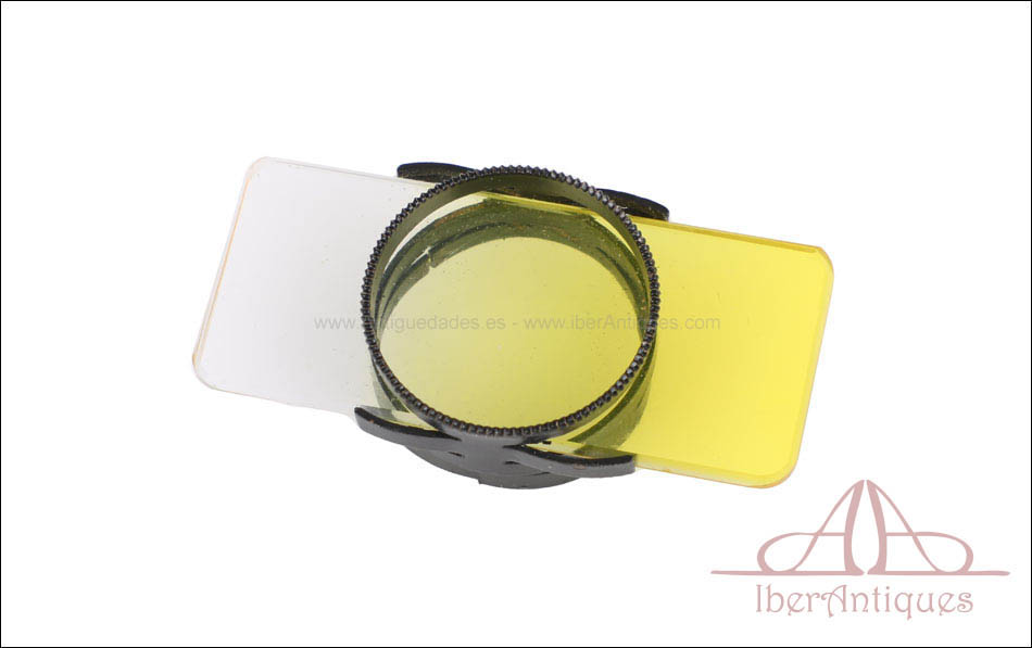 Incluye un filtro degradado de color amarillo a blanco, accesorio poco común que aporta un toque estético y técnico muy valorado, y una película Kodak No. 127 original, hoy pieza de coleccionismo que refuerza la integridad del conjunto. Todo está en su sitio, lo que convierte a esta cámara en una pieza completa, atractiva y perfectamente conservada.
