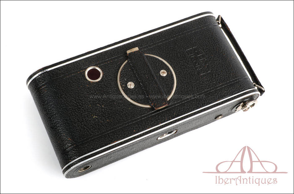 Esta Zeiss Ikon Cocarette 519/15 Special, fabricada en Dresde, Alemania, hacia 1930, es una de las cámaras plegables más elegantes y técnicas de su época. Diseñada para película 116, produce negativos de 6,5 × 11 cm, ideales para retratos y paisajes de gran detalle. Esta versión especial destaca por su mecanismo de apertura automática del frontal al presionar el botón lateral, una mejora avanzada para su tiempo que facilitaba la rapidez y precisión en la preparación del disparo.