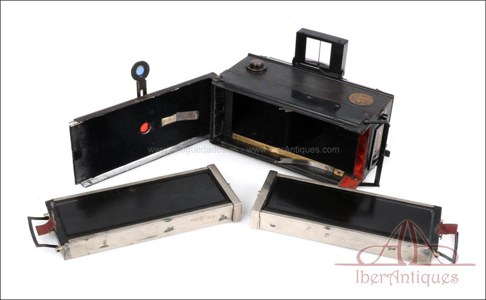 Antigua Cámara Estereoscópica Monobloc con 2 Chasis Magasin. Francia c.1912 |