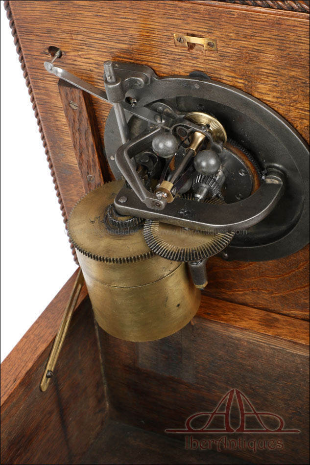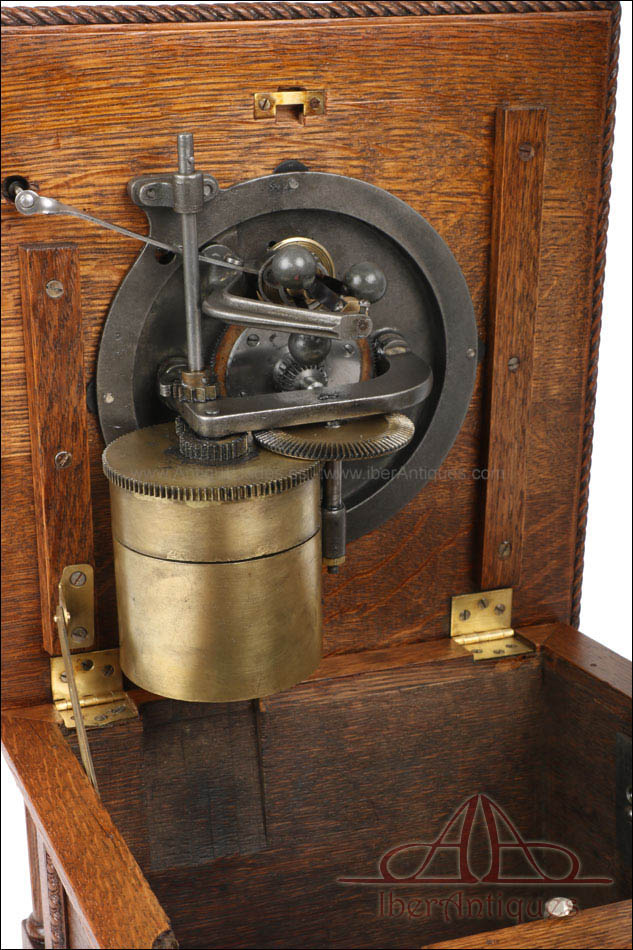 El mecanismo interno es un verdadero prodigio: motor de triple cuerda de alta potencia, capaz de proporcionar una duración de reproducción superior y un arrastre regular con todo tipo de discos, y con tambores de latón dorado, una característica exclusiva de las primeras versiones. Versiones posteriores reemplazaron estos tambores dorados por acabados plateados, lo que convierte a este modelo en una versión especialmente buscada por los coleccionistas.