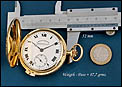 El reloj incorpora repetición a minutos, accionada mediante el pulsador situado alrededor de la posición de las siete. La sonería funciona correctamente, marcando horas, cuartos y minutos con un sonido claro y bien regulado. Los gongs interiores están en muy buen estado, y el sistema responde con firmeza al accionarlo. Es una complicación muy valorada en relojes de este periodo y añade un interés especial a la pieza.