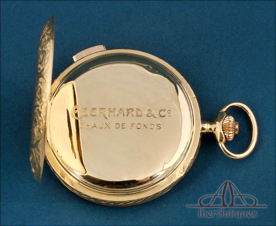 Antiguo Reloj de Bolsillo Eberhard & Co., Oro 18K con Sonería a Minutos. Suiza, ca.1890 |