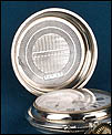 Al abrir la tapa frontal, todas ellas perfectamente ajustadas y en excelente funcionamiento, aparece una esfera blanca limpia y límpida, sin grietas ni daños, donde destacan los números romanos negros y el pequeño segundero a las seis. La claridad de la composición, el equilibrio de las agujas y la proporción de los elementos evocan un tiempo en el que la precisión y la estética se concebían como un mismo arte. Su tamaño, 59 mm de diámetro, lo convierte en un reloj de presencia notable, ideal para quienes disfrutan de piezas de gran formato con aspecto robusto pero refinado. El cristal frontal se mantiene transparente y sin rayas, permitiendo una lectura nítida y elegante.
