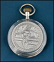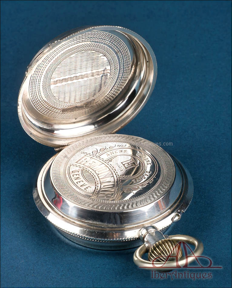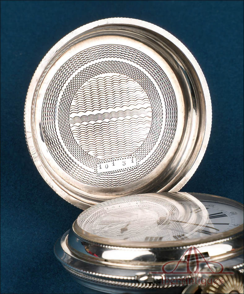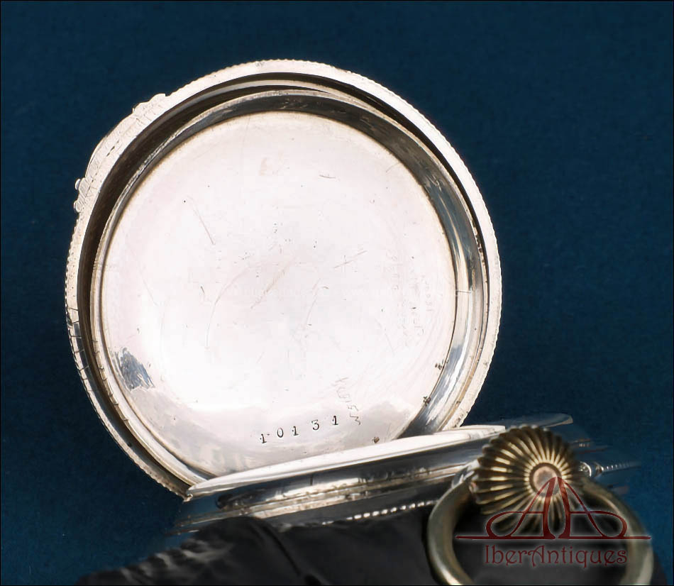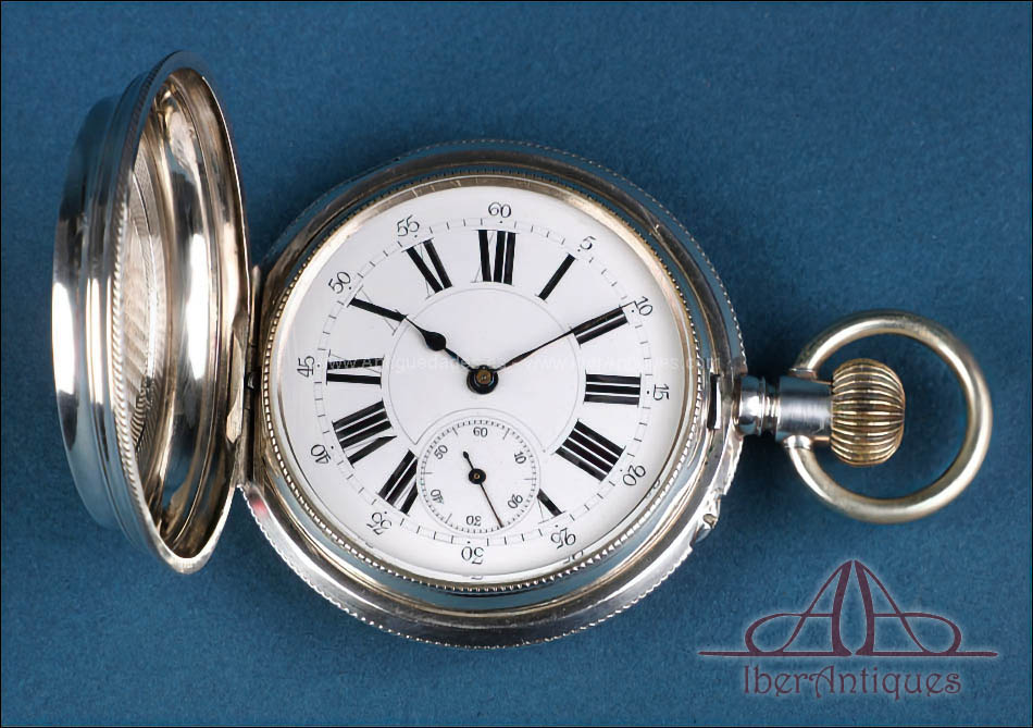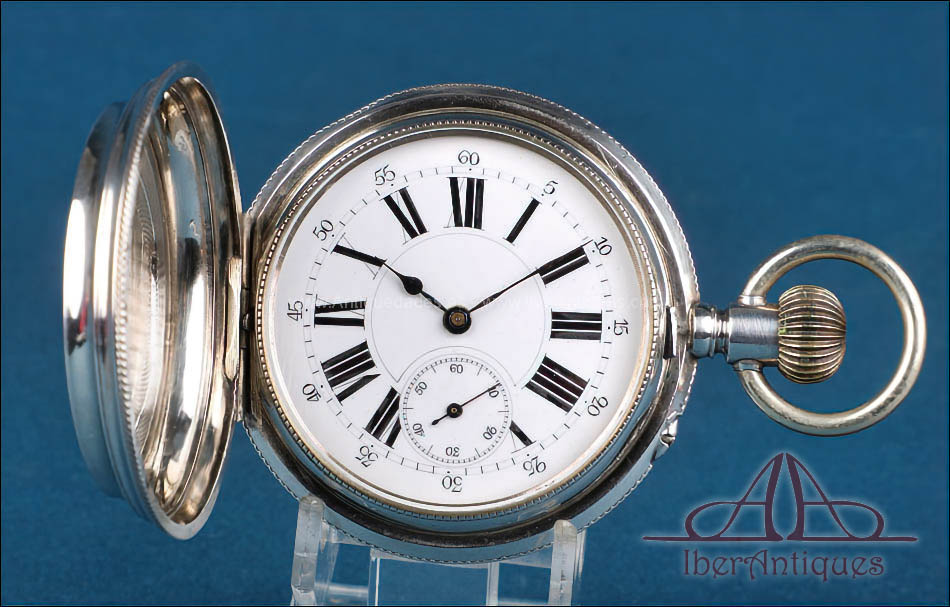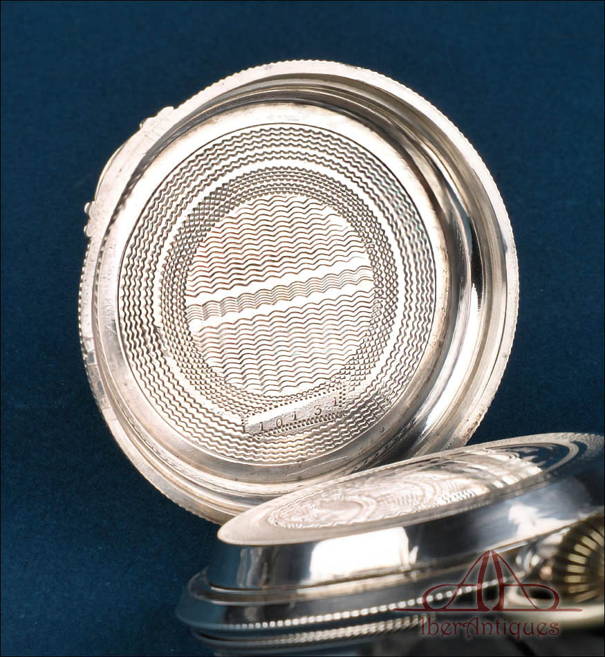 Antiguo Reloj de Bolsillo de 15 Rubíes y Caja Grabada Plateada. Suiza, 1880–1890 |