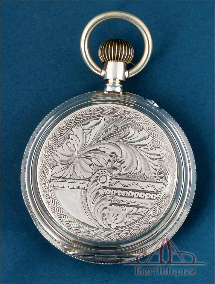 Durante las décadas de 1880 y 1890 se vivió un momento especialmente brillante para la relojería suiza. Los talleres de Ginebra, La Chaux-de-Fonds y Le Locle destacaron por la excelencia de sus calibres, la decoración de sus puentes y platinas, y la capacidad de producir relojes robustos y elegantes a la vez. La incorporación de grabados exteriores, como los que luce la caja de este reloj, se convirtió en un signo de distinción apreciado por compradores europeos y americanos. La estética vegetal y geométrica reflejaba las influencias artísticas de la época: desde los últimos coletazos del romanticismo hasta los inicios del modernismo.
