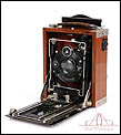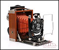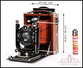 Esta antigua cámara Contessa-Nettel Adoro Tropen 6,5x9, fabricada en Alemania alrededor de 1923, es una pieza excepcional tanto por su estética como por su carácter técnico. Se trata de uno de los modelos tropicalizados más buscados de la firma Contessa-Nettel, una casa alemana de prestigio que poco después pasaría a integrar la mítica Zeiss Ikon. La cámara fue concebida específicamente para soportar condiciones climáticas adversas, lo que explica su atractivo acabado en madera barnizada de gran calidad y su construcción reforzada con herrajes metálicos. Esta combinación de materiales aporta una presencia cálida, sólida y muy elegante, típica de los modelos tropicales de la época. El característico fuelle de color anaranjado, tan propio de las cámaras tropicales, se conserva en muy buen estado, con solo un área de ligero desgaste en un lateral que no afecta en absoluto a su uso ni a su presentación.