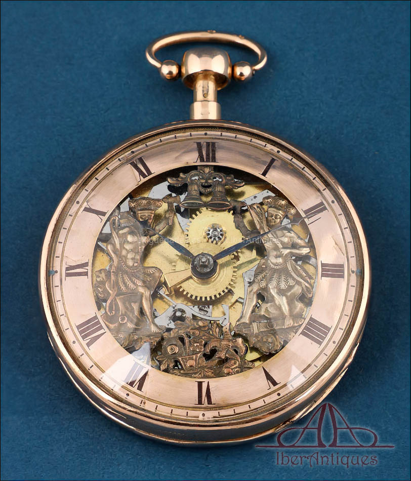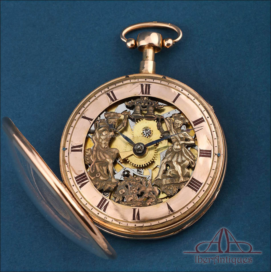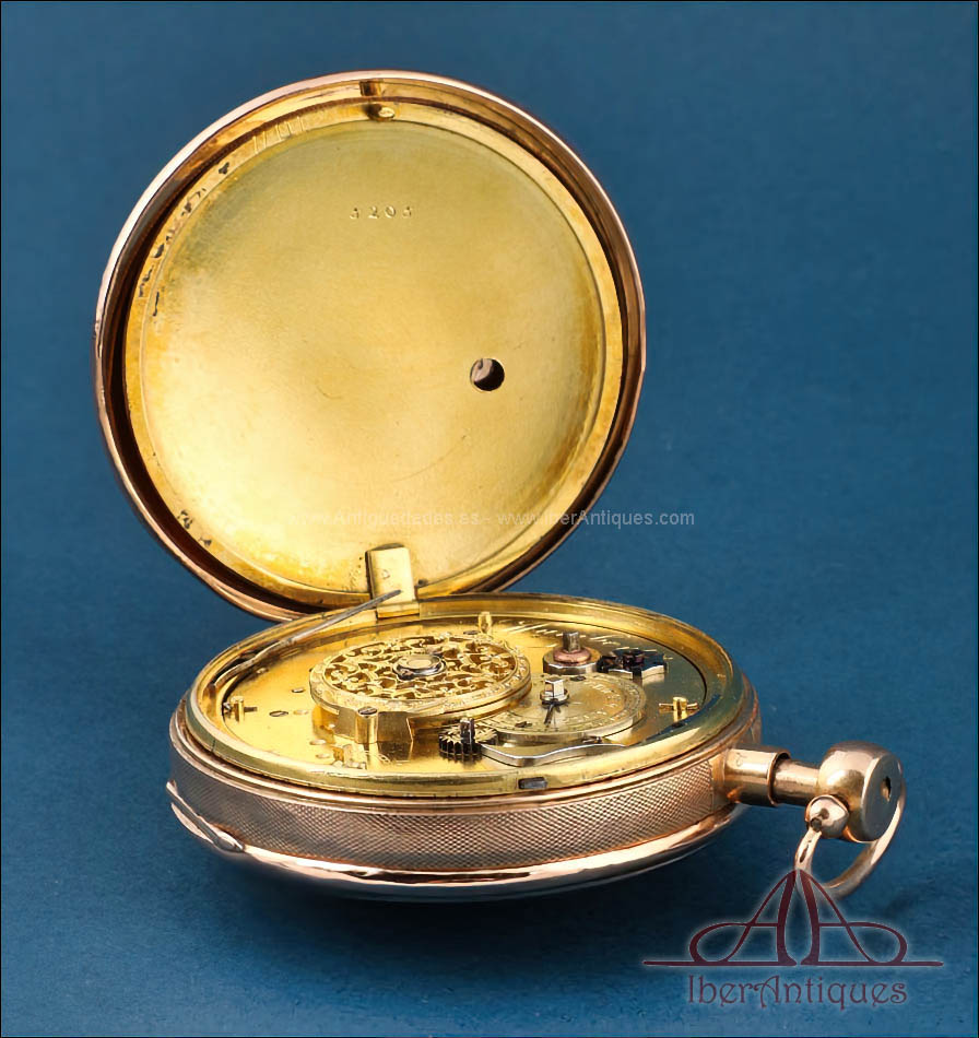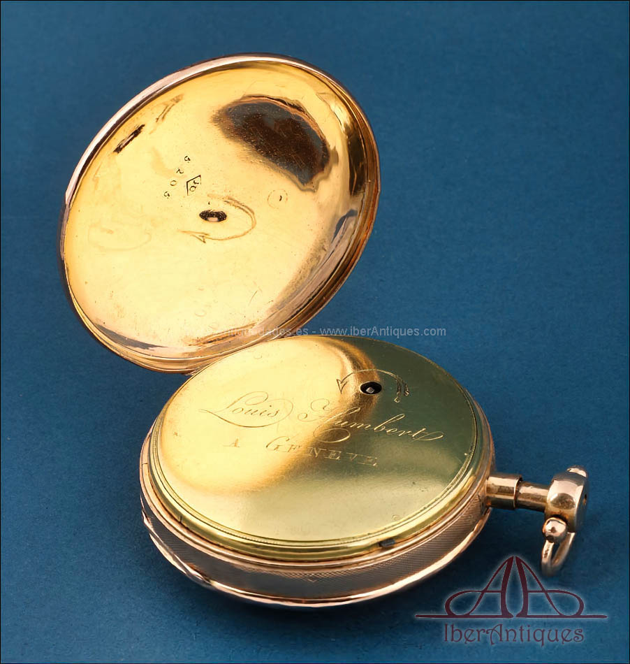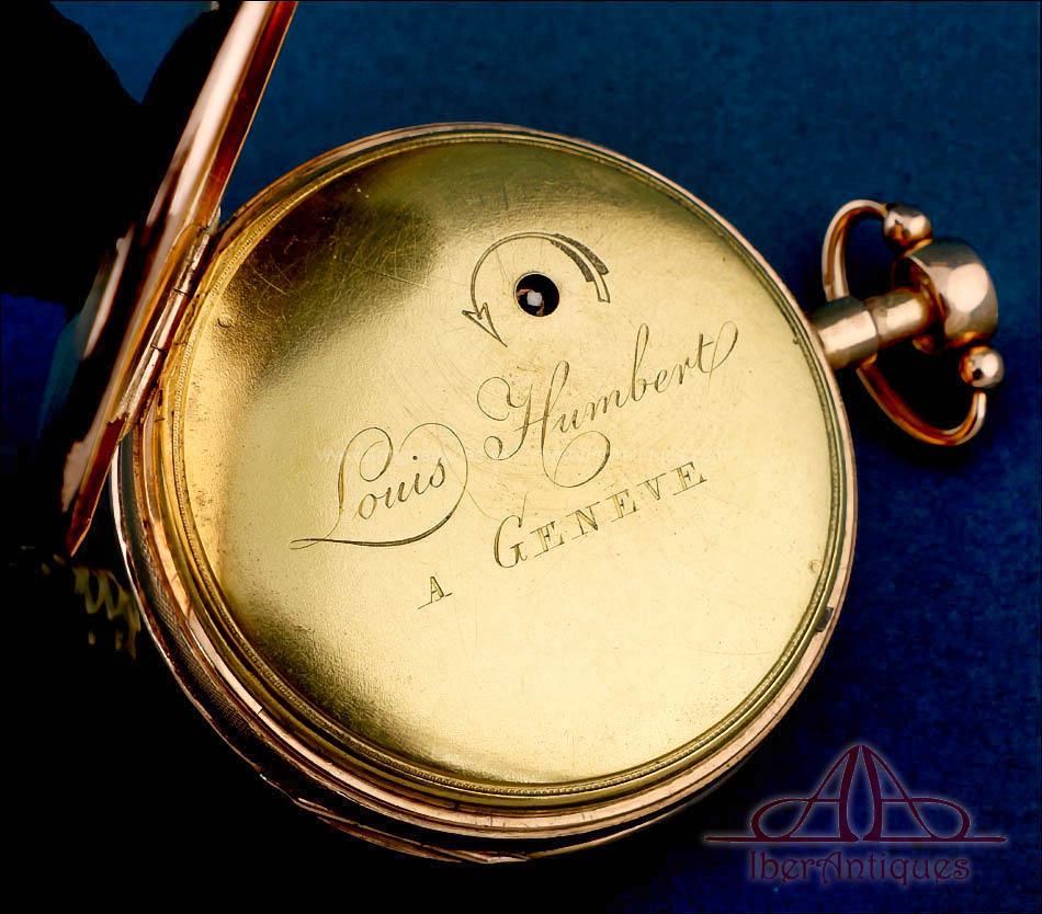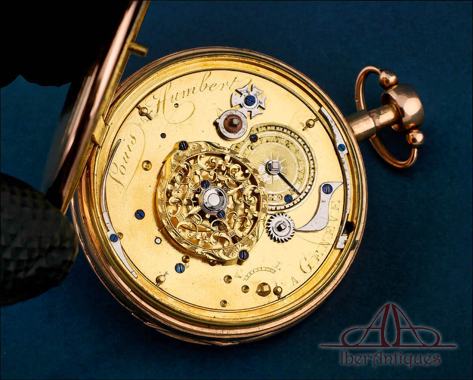 Antiguo Reloj de Bolsillo Autómata. Oro 18K. Sonería de Cuartos. Humbert, Suiza, ca. 1825 |