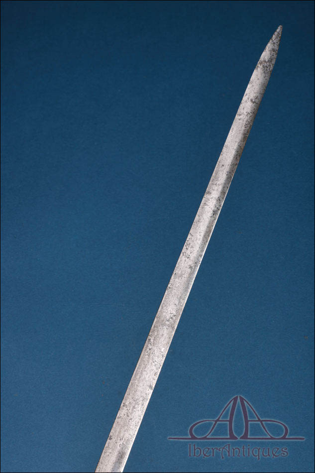 La espada se conserva en muy buen estado general, con pátina homogénea acorde a su antigüedad. Es una pieza especialmente interesante por su tipología representativa del siglo XVII español. Destaca por la firma de un espadero reconocido y por su coherencia histórica estructural. Su rareza en el mercado actual la convierte en una oportunidad notable para coleccionistas especializados.