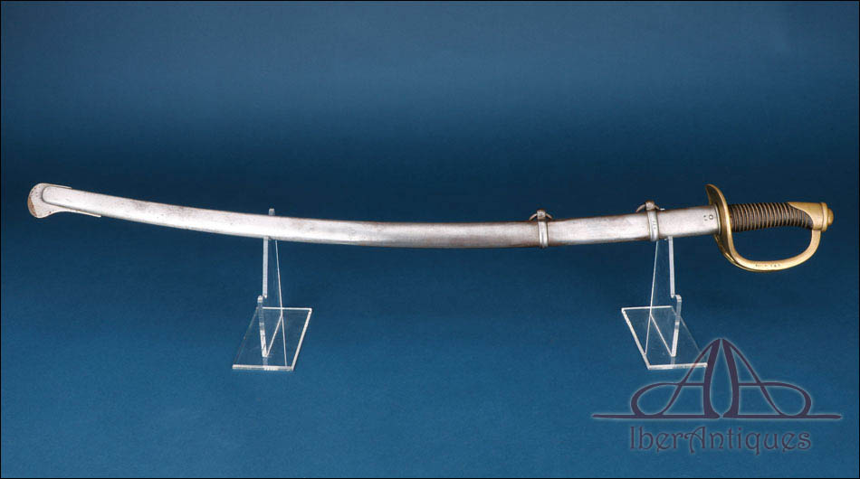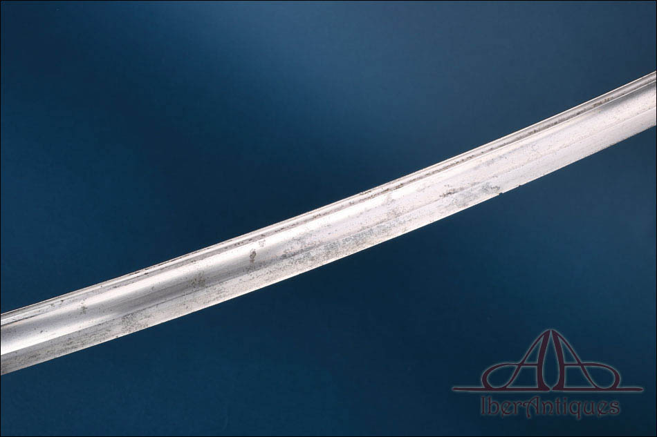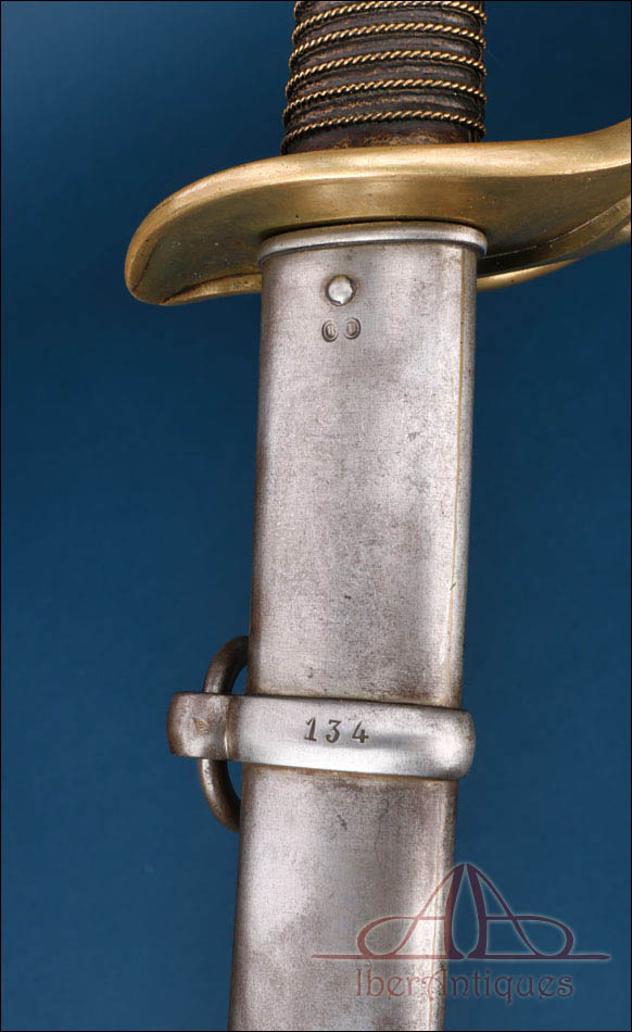El sable conserva su vaina metálica original, equipada con dos abrazaderas y sus correspondientes anillas de suspensión. La vaina se mantiene en buena forma, muy bien conservada. El estado de conservación general es muy bueno dentro de su categoría. En conjunto, se trata de un sable bien preservado, con presencia equilibrada y carácter histórico evidente.