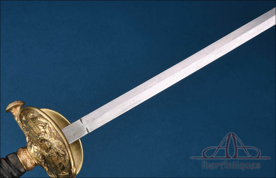 Estamos ante una espada reglamentaria francesa especialmente atractiva, tanto por la calidad de su montura como por la riqueza simbólica de su decoración. Una pieza seria, elegante y con gran fuerza histórica, ideal para colección de militaria francesa, armas blancas reglamentarias europeas o conjuntos centrados en oficialidad de alto rango.