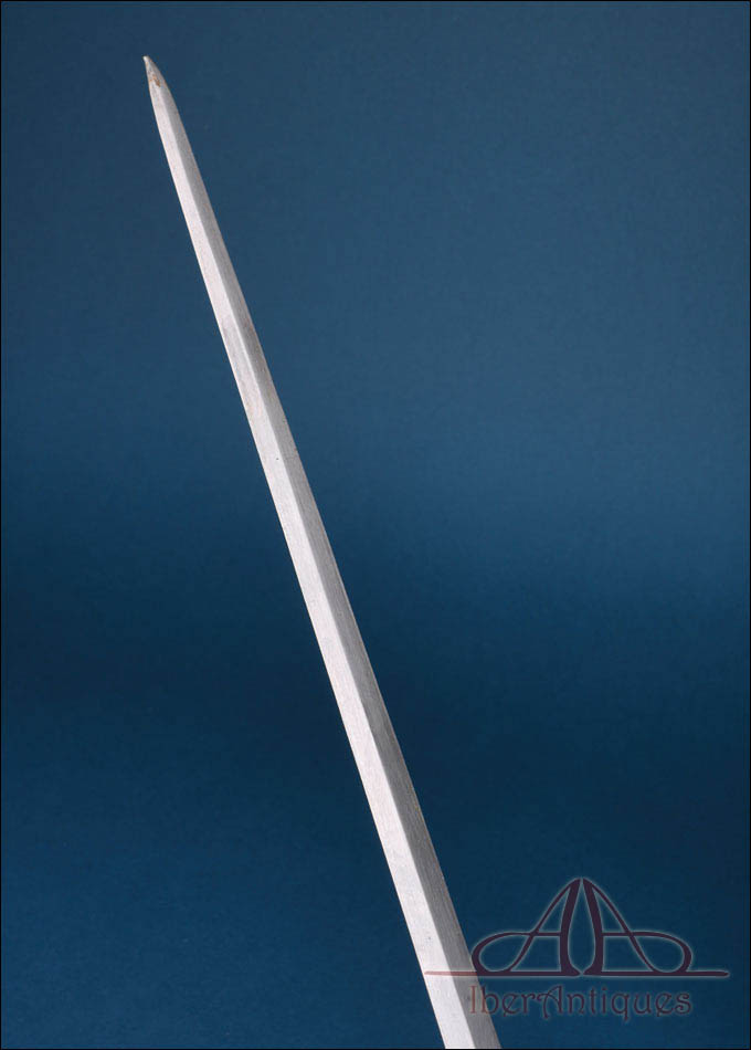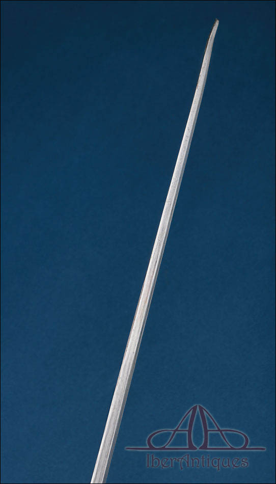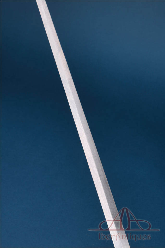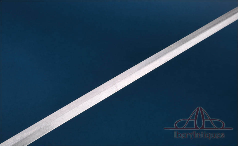La hoja es recta, larga y de clara vocación de estocada, con perfil elegante y muy limpio. Responde al tipo de hoja de doble filo con arista, propio de este modelo. Su línea es esbelta y armónica, muy propia de las espadas reglamentarias francesas de oficial superior de este periodo. Mantiene una buena presencia general con desgaste y señales de uso acordes con su antigüedad.