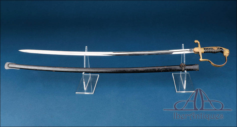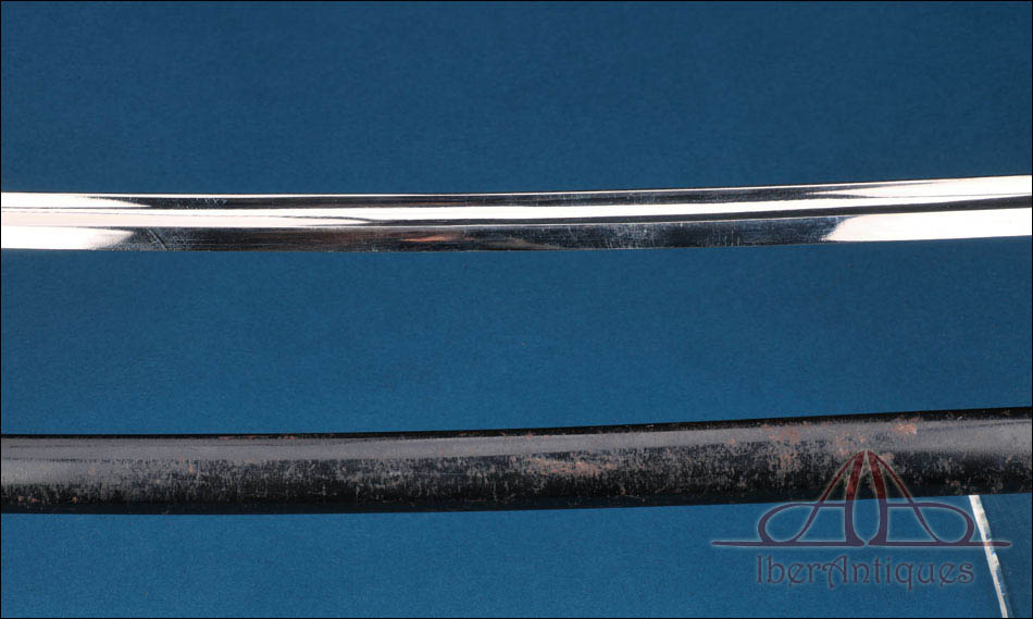 Medidas: Longitud total del sable: 92,5 cm (36.42 in). Longitud de la hoja: 79,5 cm (31.30 in).