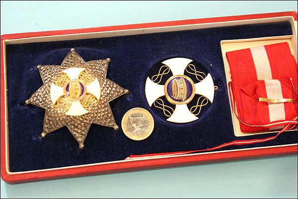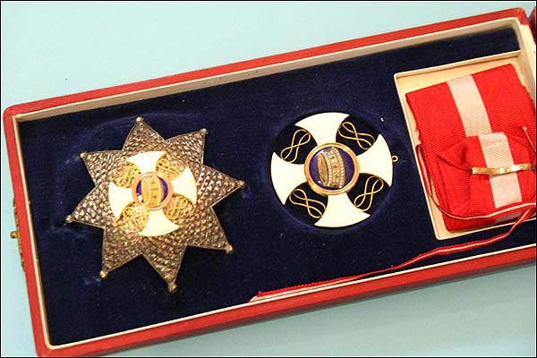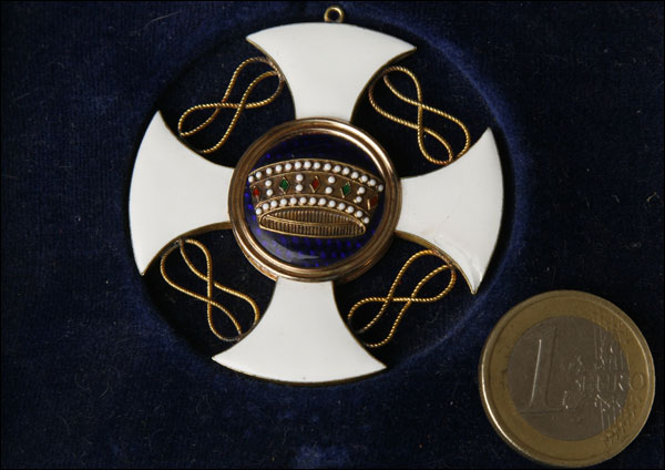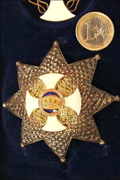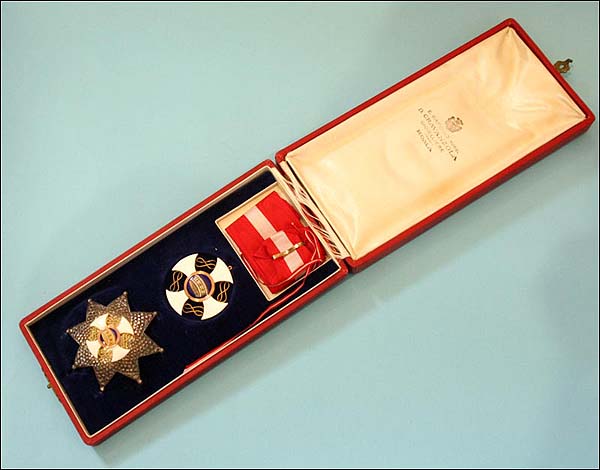 Italy. Order of the Crown. Grand Officer badge and Grand Officer breast star. Gold and silver. With its original case.