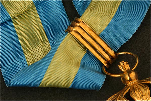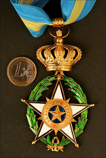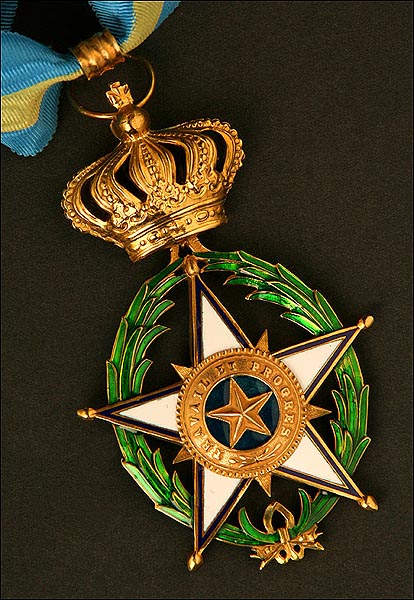 Medalla de la Orden de la Estrella de Africa, categoría Comendador en plata maciza dorada. En perfecto estado de conservación tanto en lo que se refiere al metal como a los esmaltes y la cinta, que es la original y permanece intacta. Se compone de una estrella central de cinco puntas esmaltada en blanco, cuyo núcleo lo ocupa otra menor rodeada por el lema "Travail et Progres", todo ello en dorado. Al conjunto lo circunvala una corona de laurel esmaltada en verde que se encuentra rematada por una corona regia que representa a la Casa Real de Bélgica. La cinta es bicolor, con dos bandas celestes a los lados y una dorada en la parte central. En lo que se refiere al contexto histórico, la Orden de la Estrella de África fue creada por el Rey Leopold II de Bélgica en 1888, en su calidad de gobernante del Estado Libre del Congo, y fue adjudicada para los servicios en el Congo y para la "promoción de la civilización de África en general". Su integración en el sistema de honores belga se produce el 10 de octubre 1908 a raíz de la anexión del Estado Libre del Congo por parte de Bélgica. El lema de la Orden es "Travail et Progrès" (en francés: Trabajo y progreso). El rey de los belgas es su Gran Maestre. A pesar de que el Congo no es una colonia belga, es todavía considerado como una Orden de Bélgica. Se concede por Real Decreto. Después de la independencia del Congo en 1960, la Orden de la Estrella de África ya no se expide (aunque todavía existe). El ejemplar que aquí presentamos es representativo de las últimas ediciones de esta medalla. Tamaño: 94 mm de alto (incluída la corona) y 57 mm de ancho.