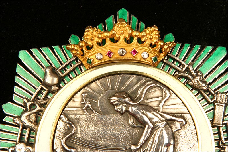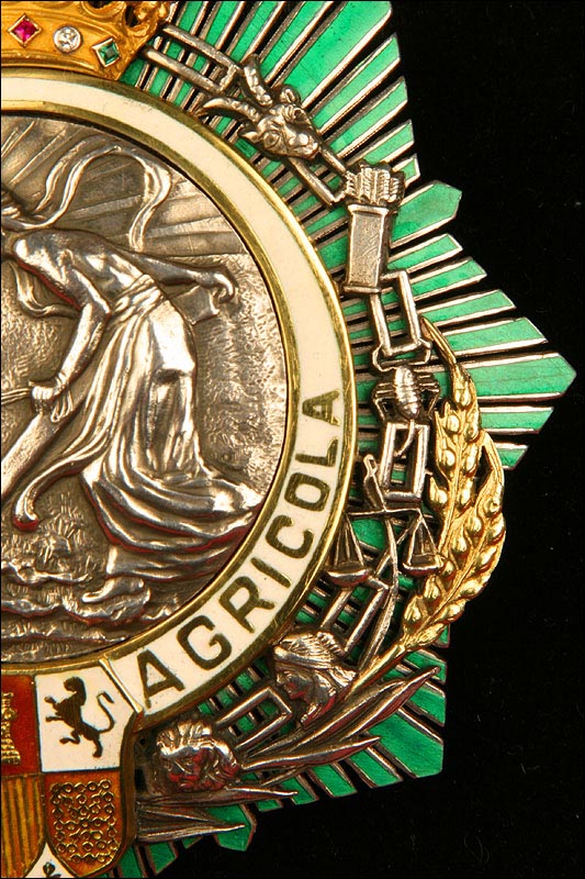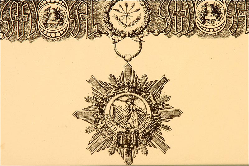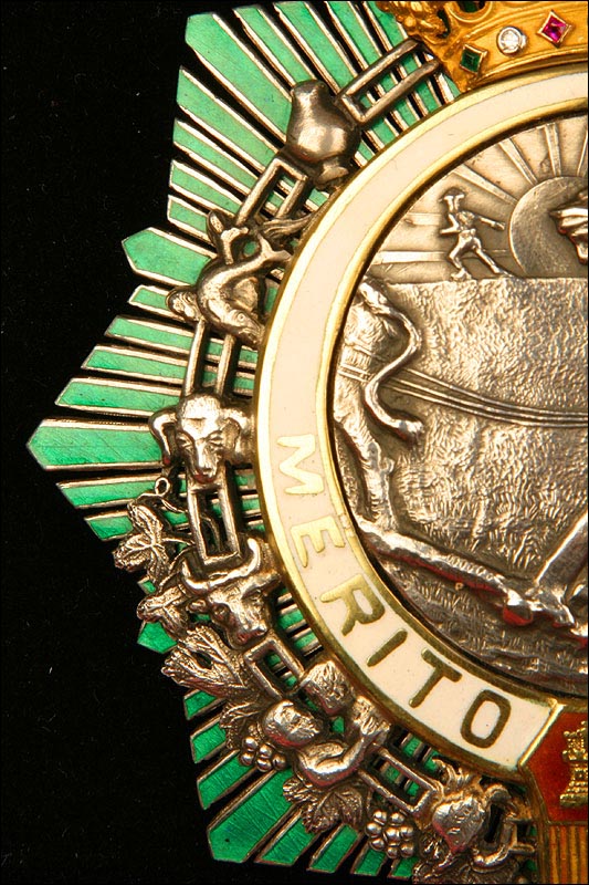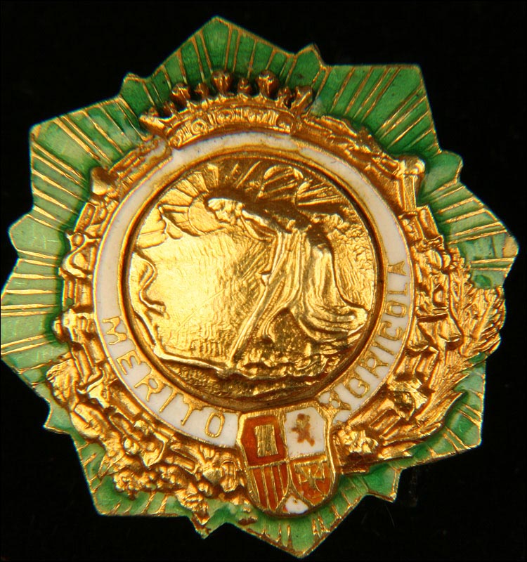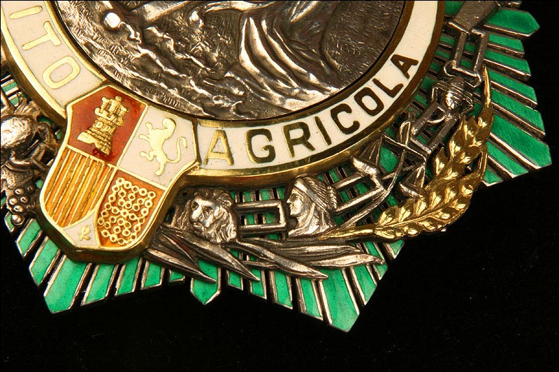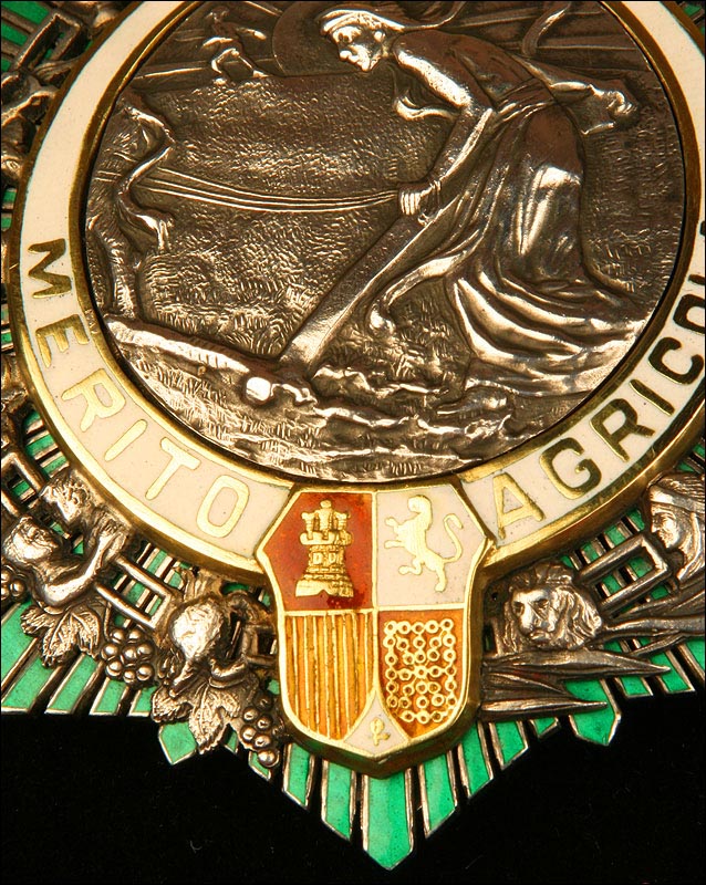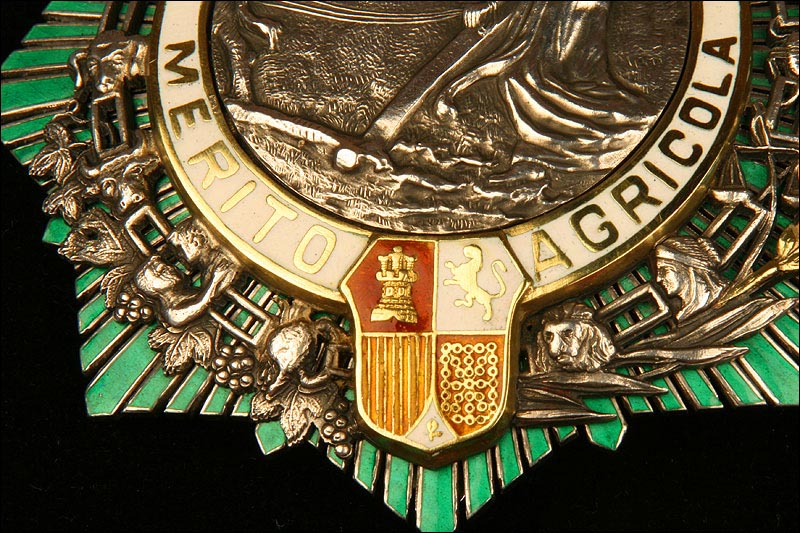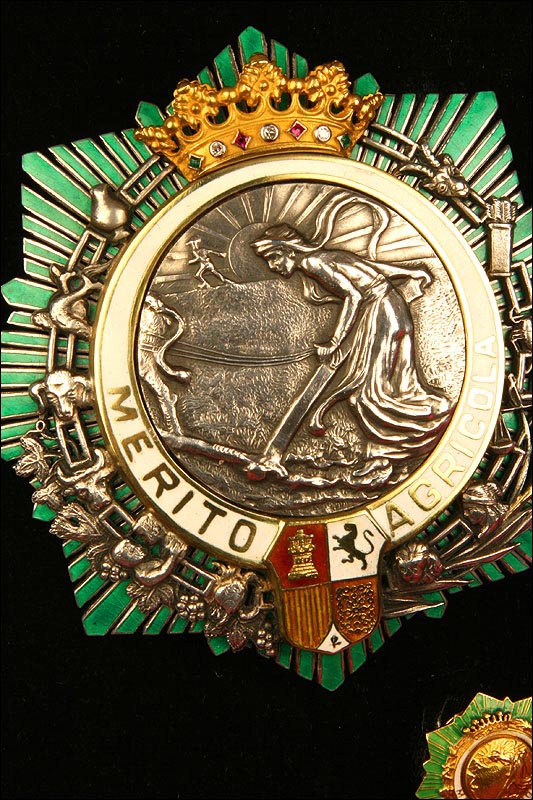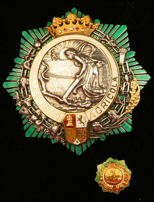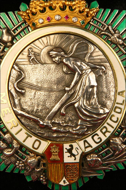 La Orden al Mérito Agrícola se instauró en el año 1905, y en 1987 fue convertida en la actual Orden al Mérito Agrario, Pesquero y Alimentario. Se concedía a personas e instituciones que hayan mostrado una labor destacada en el sector agrícola, y forma parte de las llamadas órdenes civiles, que se conceden únicamente por este tipo de méritos (no militares). Se trata de una alta distinción de gran prestigio, que a su gran belleza y valor material une su interés histórico y militar. En definitiva, es la mejor de las adquisiciones para cualquier colección de antigüedades y objetos militares e históricos que se precie.
