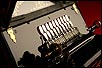 En la parte superior frontal del organillo vemos una gran inscripción en letras doradas que dice: HOME MUSIC BOX, es decir, “caja de música doméstica”. Gracias a las elegantes bisagras historiadas, la parte delantera se levanta y despliega para dejar a la vista el mecanismo en que se colocan los rodillos.