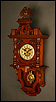 Este fantástico reloj es una valiosa antigüedad y también una magnífica pieza decorativa. Está formado por distintas piezas de madera de nogal barnizada a muñequilla y en excelente estado de conservación. La decoración está compuesta por columnas y remates torneados, y el reloj está coronado por una talla que representa a un águila con las alas ligeramente desplegadas. Tanto la esfera como el péndulo están protegidos por sendas puertas de madera y cristal, que pueden abrirse para acceder a ambos.